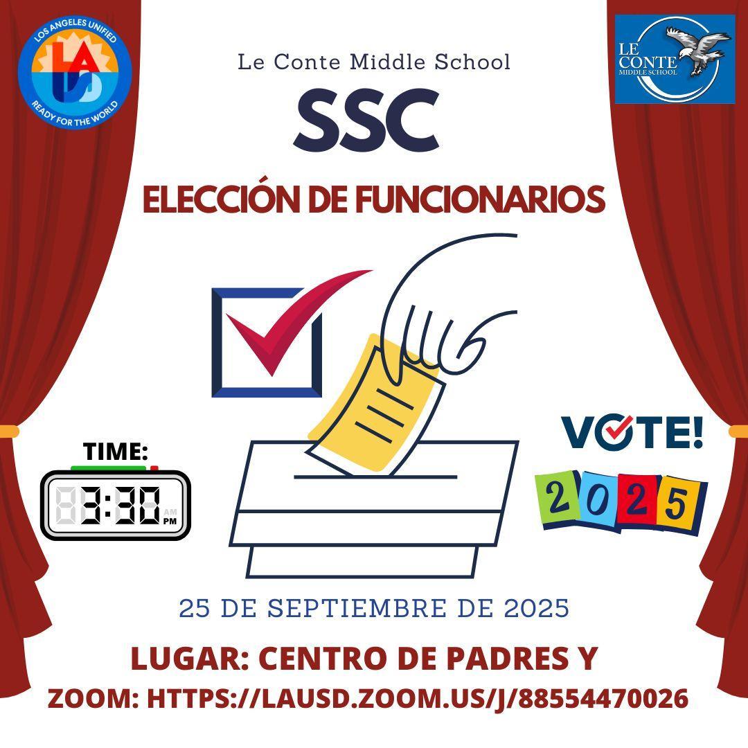 SSC Election of Officers SSC Election of Officers Parent Center or https://lausd.zoom.us/j/88554470026 Published September 22, 2025 Print